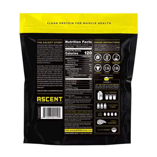 Ascent 100% Whey, Native Whey Protein Blend, Vanilla Bean, 4.25 lbs