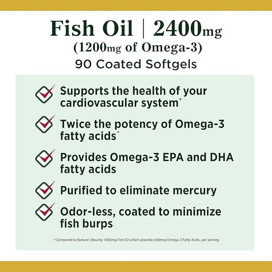 Nature's Bounty Fish Oil 2400 mg y 1200mg de omega 3, 90 softgels
