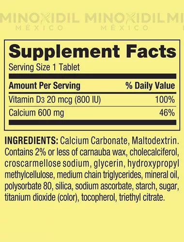 Spring Valley Calcium 600mg, Vitamina D 20mcg, 500 tabletas