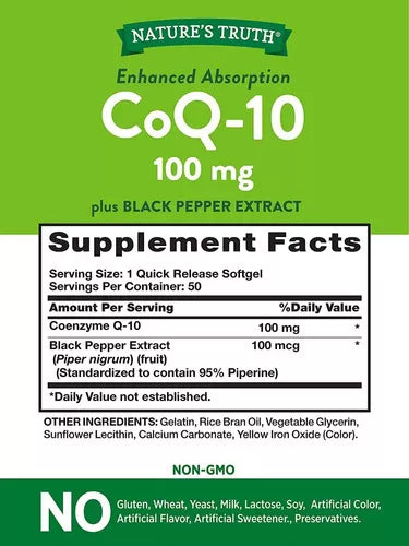 Nature's Truth Absorción Mejorada Coq-10 100 Mg 50 Softgels Sabor Sin Sabor