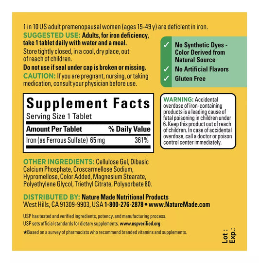 Nature Made Hierro 65mg, 150 Tabletas