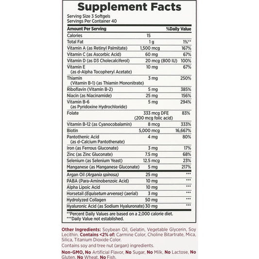 Nature's Bounty Optimal Solutions Advanced Cabello, Piel y Uñas Biotina & Vitaminas A, C, & E Capsulas Blandas, 120pzs