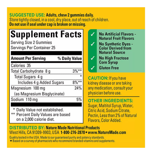 Nature Made Glicinato De Magnesio 100mg, 50 Gomitas