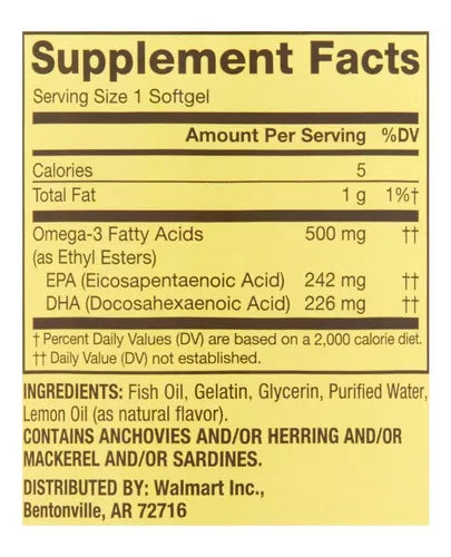 Spring Valley Omega-3 500 Mg 180 Softgels Sabor A Limón