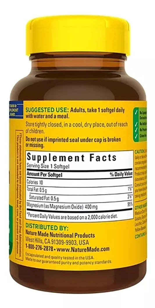 Nature Made Magnesio 400 Mg Extra Fuerza 60 Softgels