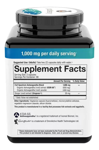 Youtheory Ashwagandha 1,000mg 180 Capsulas Vegetarianas