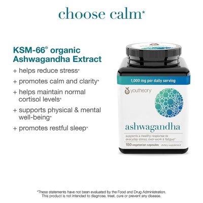 Youtheory Ashwagandha 1000 mg Vegetarian 150 capsulas